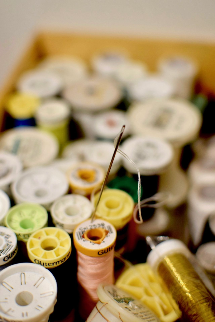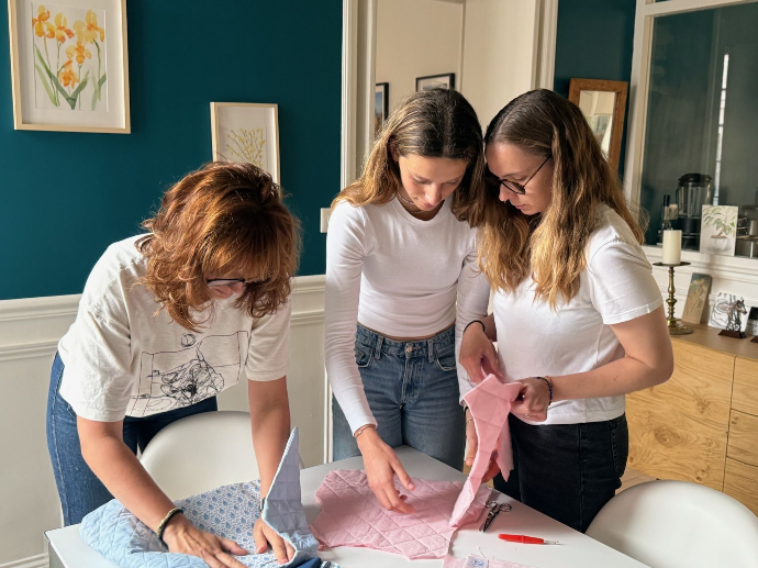 À l'atelier, on aime donner une seconde vie aux trésors oubliés. Tissus issus de stocks dormants, vêtements délaissés : chez nous, rien ne se perd, tout se transforme.